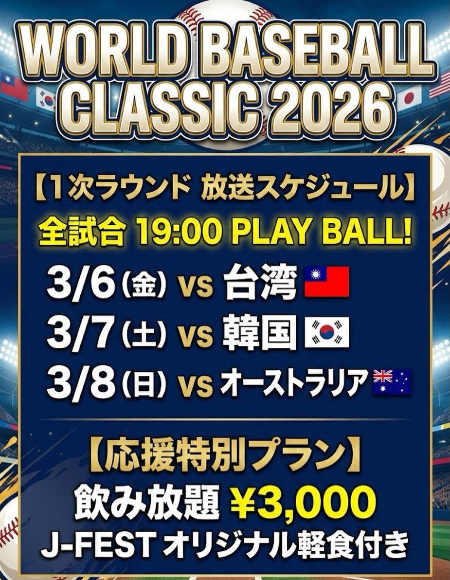 ⚾️WBC⚾️⚾️WBC⚾️ 3/6(金)から3日間、お店で放映します! みんなで一緒に応援しよう✨ 3/6(金) 台湾戦 3/7(土) 韓国戦 3/8(日) オーストラリア戦 ⏰ 試合開始 19:00 店舗オープン 18:30 30 […]